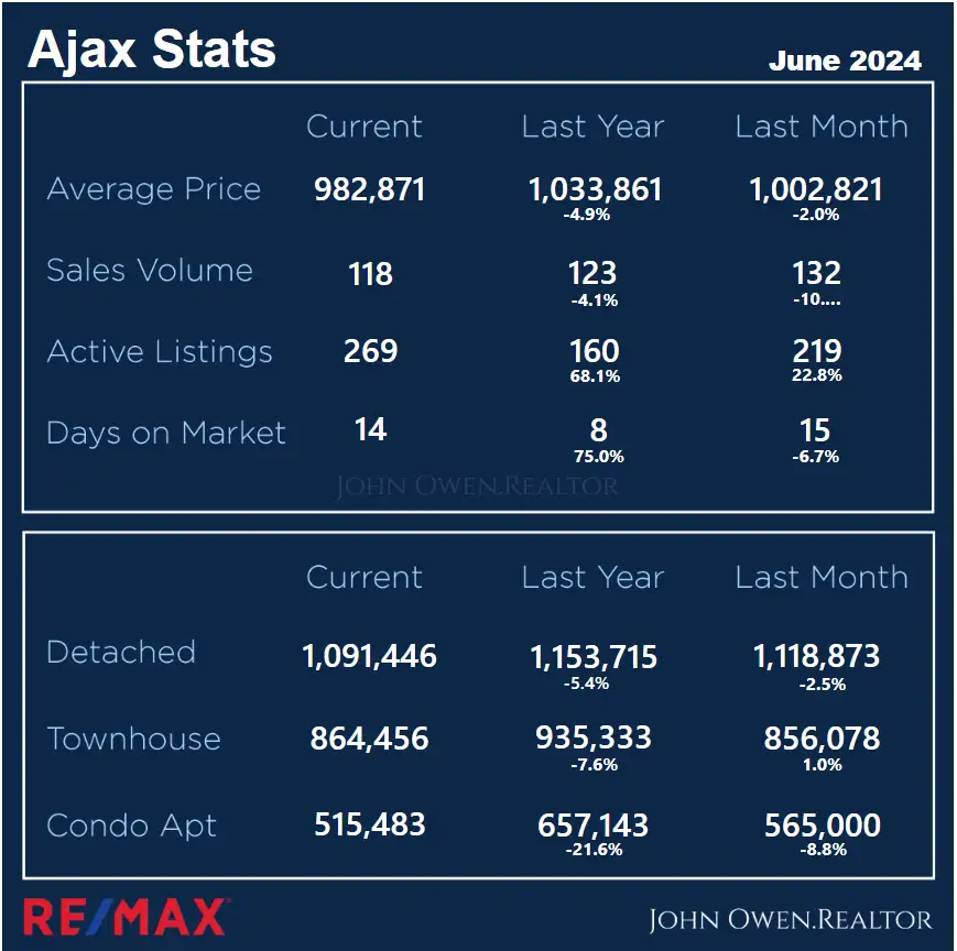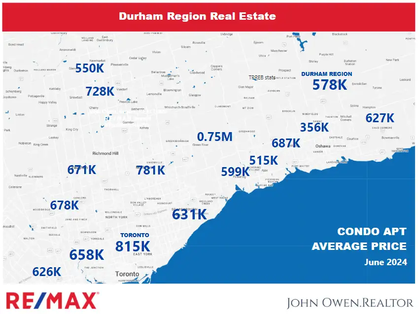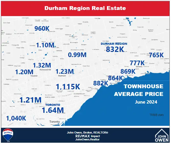 Townhouses in Durham averaged 832,000 in June. That figure is substantially lower than other areas of the GTA.